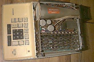 A very early four function machine with orange flourescent displays (not Nixies). Made in USA.